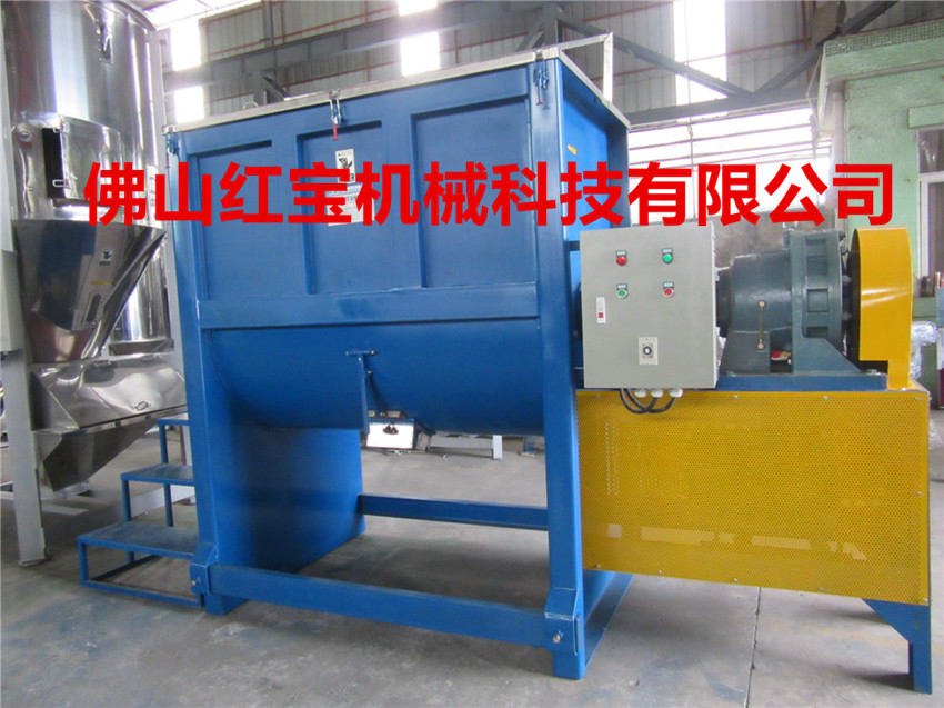1.機(jī)槽為U形體,采用不銹鋼制造,內(nèi)裝攪拌槳葉,橫臥在塑料臥式攪拌機(jī)的減速器與倒料減速器上.