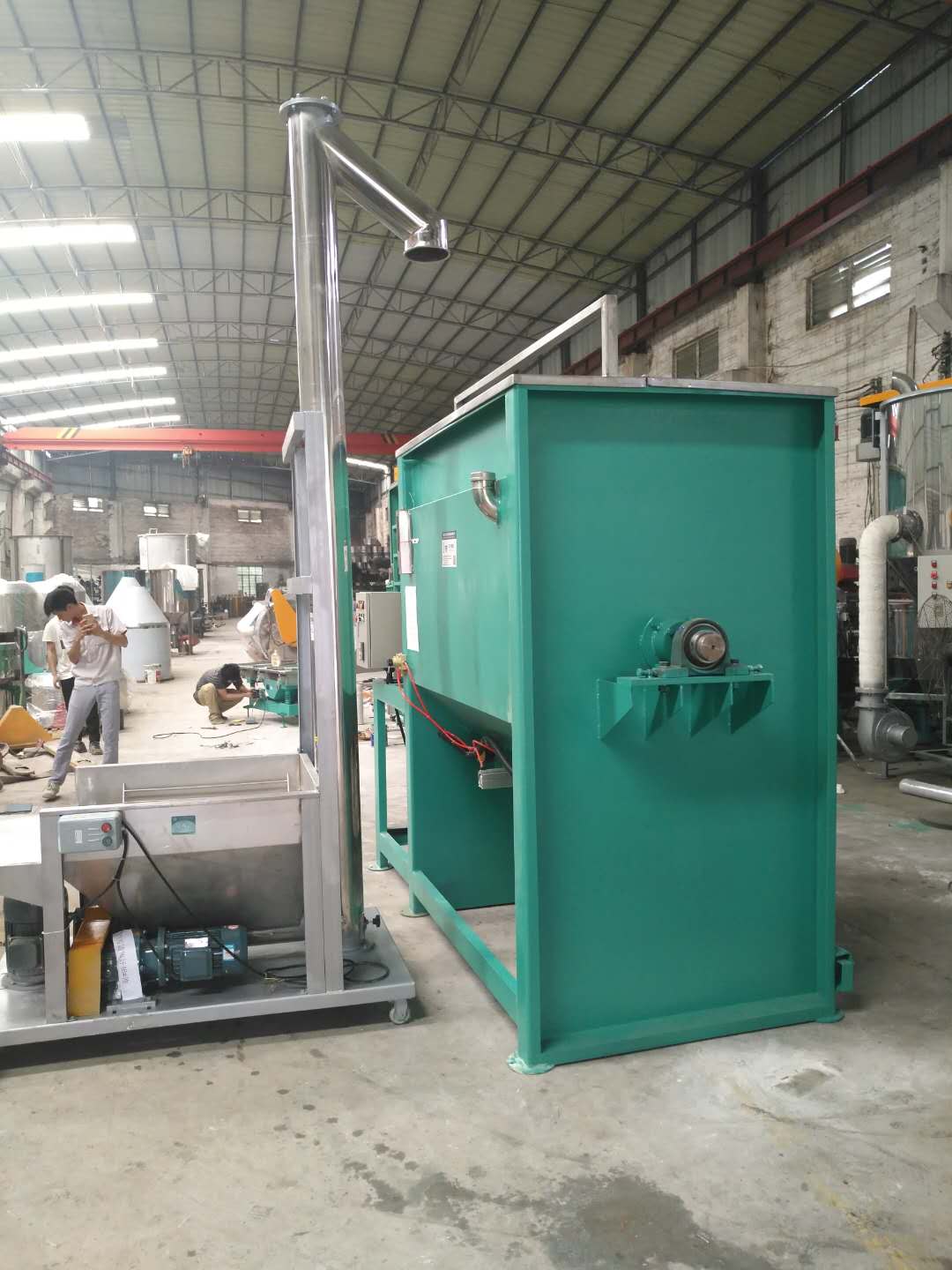 結(jié)構(gòu)特點(diǎn):該機(jī)為臥式筒體,獨(dú)特的結(jié)構(gòu),運(yùn)轉(zhuǎn)平穩(wěn),質(zhì)量可靠,噪音低,使用壽命長,安裝維修方便,并有多種攪拌器結(jié)構(gòu),用途廣泛的多功能混合設(shè)備?;旌暇鶆蚨雀?是粘性,螺旋帶上可以安裝刮板,更適應(yīng)稠狀,糊狀的混合。在不同物料的混合要求下(特殊物料必須每次混合后需清洗),干粉,細(xì)粉,膩?zhàn)臃叟P式攪拌機(jī),帶提升機(jī)圖片。雙螺旋攪拌機(jī),攪拌非常均勻。