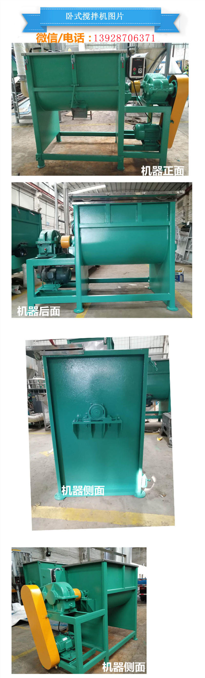 1噸干粉臥式攪拌機(jī)工作原理:攪拌機(jī)與其他混合機(jī)相比較具有混合時(shí)間短,適應(yīng)性廣不破碎料,片料,粉末料,化工料,等易于清理清掃等優(yōu)點(diǎn),對(duì)物料不會(huì)壓碾和磨碎,對(duì)粗料、細(xì)料的混合也有良好的適應(yīng)性。臥式攪拌機(jī)在不破壞物料的狀態(tài)下,在機(jī)械產(chǎn)生橫向交錯(cuò)對(duì)流、摻混、擴(kuò)散等復(fù)合運(yùn)動(dòng),使物料在短時(shí)間內(nèi)達(dá)到最佳混合的破碎料。臥式攪拌機(jī)出料口采用多種出料方式供客戶選擇,密封好,雙向S型螺旋槳葉。拌料均勻快速!